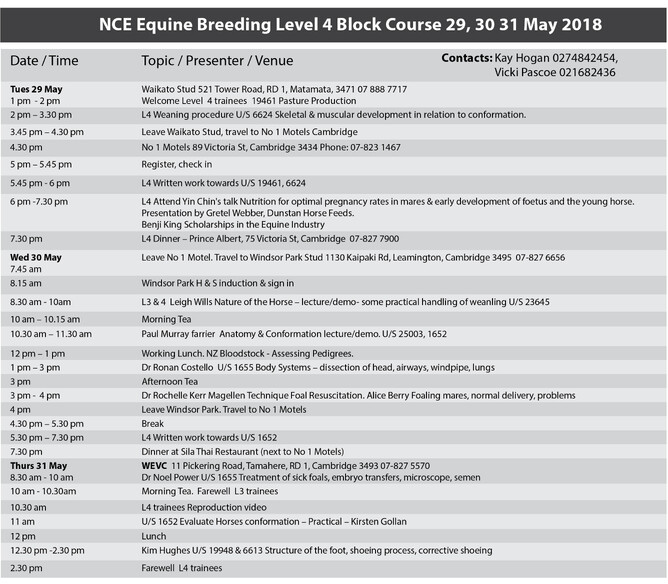 Enrolments are being called for the annual equine breeding winter block course, which will take place over three days between May 29 and May 31.