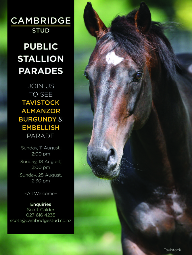 Cambridge Stud will host the first of three public stallion parades this Sunday at 2pm.