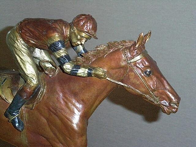 Derek Mayne, Chairman of the Phar Lap Trust visited the NZTBA offices on Friday with one of the magnificent bronze Phar Lap miniatures, created by sculptor, Joanne Sullivan Gessler. Joanne was commissioned by the Phar Lap Trust to create a powerful life size sculpture of the champion race horse in full gallop ridden by his regular jockey, Jim Pike. Limited editions of 'Phar Lap Maquettes are are now available. Information about the project and sculptor Joanne Gessler can be viewed online at http://www.pharlap.org.nz/index.html