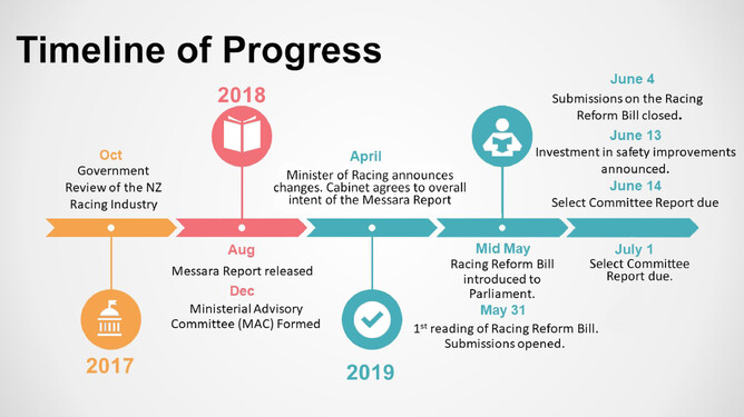 In mid-May the much anticipated Racing Reform Bill was introduced to Parliament, it received its first reading on the 31st of May, and following submissions to the Bill which had to before Parliament by June 4th it is now at the Select Committee stage with a report due this week.