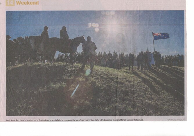 More than 10,000 New Zealand horses were sent overseas during the First World War (1914-18) and Bess was among the group. Only four returned home to New Zealand and she was the sole thoroughbred.