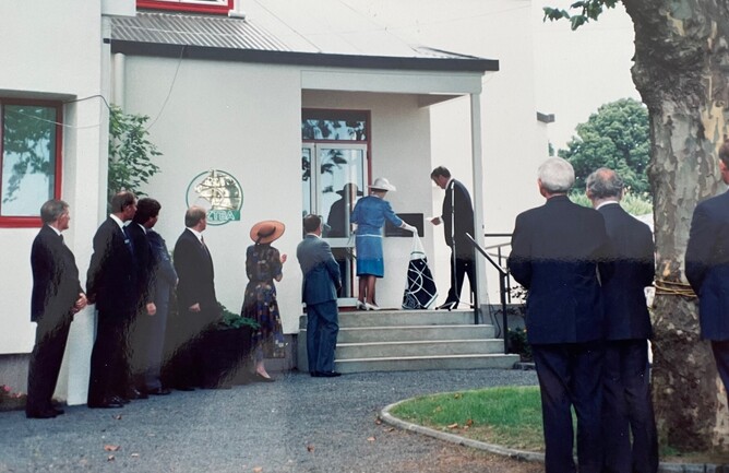 “It dawned a perfect Auckland summer’s day and in the morning the police arrived with their sniffer dogs and swept the building for bombs and then we were not allowed back in until she had officially opened the building,” recalled Cassels-Brown.