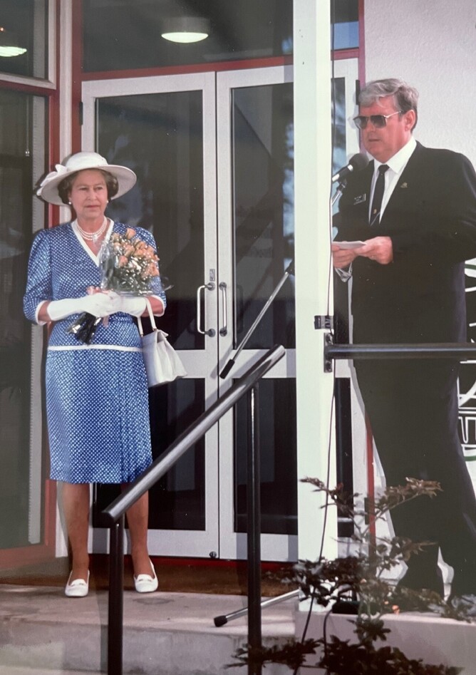 “We knew she was coming to Auckland for the 1990 Commonwealth Games and there was chatter that she may open the new grandstand at the Ellerslie racecourse so he helped me construct a letter to the Palace to invite her to come and open the building.