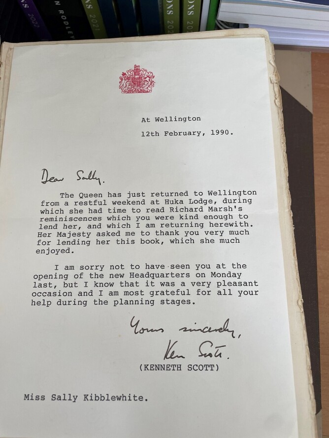 “So on the way out I gave the book to her equerry and said that Her Majesty may wish to read it and a couple of weeks later I received the book back with a delightful letter thanking me for lending the book to Her Majesty which she l enjoyed reading at Huka Lodge, and also for my assistance in organising her visit to open the office.”