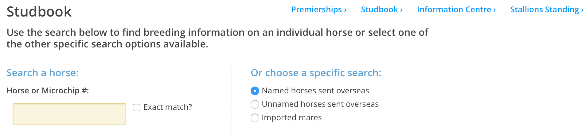 If you know your horse's race name you can search for it in the online studbook: Stud Book Search - Race Name